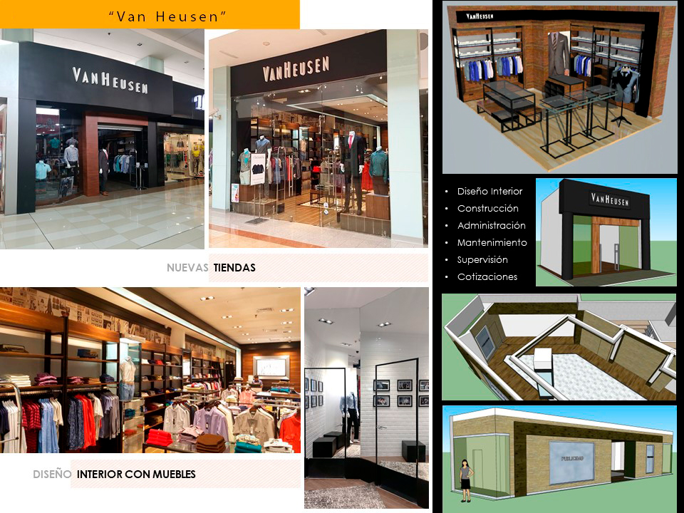 Se comenzaron a diseñar las Tiendas comenzando en el sector de Alajuela en CR, en City Mall, con 180 m2 y bajo ese concepto se hicieron las demás tiendas en San Jose en Multiplaza, Heredia en el Mall de Heredia, San Pedro y Cartago.